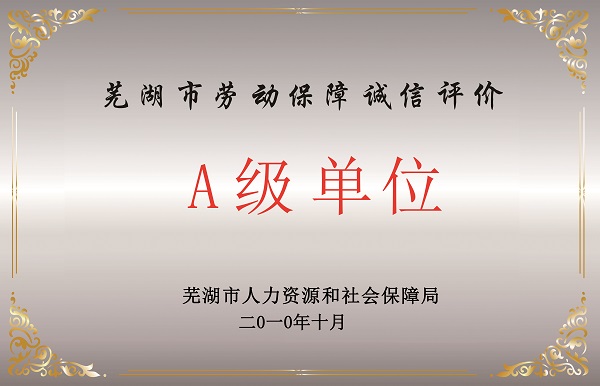 勞動保障誠信評價A級單位...